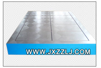 铸铁平板(铸铁平台)的包装:铁板包装和木制包装两种形式,平台表表用塑料膜封装,这种包装适于平板内陆运输,并有良好的防潮、防震、防锈和防野蛮装卸等保护平板的措施,以确保安全运抵现场。 铸铁平板(铸铁平台)铸铁的运输:运输是保证平板不变形的一个重要环节,所以运输平板时要保证不超载,不超速,不疲劳驾驶, 不在天气恶劣的情况下运输。 铸铁平板(铸铁平台)安装: 铸铁平板(铸铁平台)调试: 铸铁平板(铸铁平台)工作环境: 铸铁平板(铸铁平台)的使用注意事项:平板在使用时要先进行安装调试。然后,把平板的工作面擦拭干净,在确认没有问题的情况下使用,使用过程中,要注意避免工件和平板的工作面有过激的碰撞,防止损坏平板的工作面;工件的重量更不可以超过平板的额定载荷,否则会造成工作质量降低,还有可能损坏平板的结构,甚至会造成平板变形,使之损坏,无法使用。 平板在使用时要先进行安装调试。然后,把平板的工作面擦拭干净,在确认没有问题的情况下使用,使用过程中,要注意避免工件和平板的工作面有过激的碰撞,防止损坏平板的工作面;工件的重量更不可以超过平板的额定载荷,否则会造成工作质量降低,还有可能损坏平板的结构,甚至会造成平板变形,使之损坏,无法使用。 铸铁平板(铸铁平台)的制造标准:按JB/T7974-1999制造)简要描述 下载PDF文档 铸铁平板(铸铁平台)的质量检测: 1、铸铁平板(铸铁平台)工作表面不应有锈迹、划痕、碰伤及其他影响使用的外观缺陷。2、铸铁平板(铸铁平台)工作表面不应有砂孔、气孔、裂纹、夹渣及缩松等铸造缺陷。各种铸造表面应清除型砂、且表面平整,涂漆牢固。各棱边应修钝。在精度等级低于“00”级的平板工作面上,对于直径小于15mm的砂孔允许用相同的材料堵塞,其硬度应低于周围材料的硬度。在工作面上堵塞的部位应不多于四处,其相互之间的距离应不小于80mm。 3、在铸铁平板(铸铁平台)的相对两个侧面上,应设置有安装手柄、吊环等吊装设施的螺纹孔或圆柱孔。设计吊装位置时应考虑尽量减少因吊装而引起的变动。 4、根据用户要求,在板工作面上设置螺纹孔或沟槽后,这些部位不应出现高于工作面的凸起现象。 5、铸铁平板(铸铁平台)应采用优质细颗料的灰口铸铁或合金铸铁制造。 6、铸铁平板(铸铁平台)工作面的硬度应为HB 170-220。 7、铸铁平板(铸铁平台)工作面应采用刮削工艺,对于“3”级平板工作面也可以采用刨削工艺,刨削工作表面的表面粗糙度按轮廓算术平均偏差Ra值应不大于5um 8、铸铁平板(铸铁平台)应经过稳定性处理和去磁。 铸铁平板(铸铁平台)平 面 度:可分实验室级(Reference)、校验级(Master)、工 具室级(Working) 三级 铸铁平板(铸铁平台)平面研磨:平台在很早的时候,人们利用三块平台相互匹配以产生真平平面。一个熟练而 又有耐心的 磨石师傅可以不藉助任何量测仪器,而仅利用三平台相互匹配的 方式,做多次90度之旋转, 即可产生令人难以相信的真平程度。 铸铁平板(铸铁平台)平面度: 1.AA级:其平面度(μm)= 1+1.6D2 (D为平台对角线长或直径),用於高度精密 之测定之用, 常用於实验室。 2. A级:其平面度为AA级之两倍误差,常用於工具检验室作精密量具之检验之用。 3. B级:其平面度为AA级之四倍误差,常用於工具检验室或在现场检验量具或划线之用。 铸铁平板(平台)的分类: 按照用途分: 铸铁平板(平台)可以分为:基础平板、划线平板、检验平板、铆焊平板、焊接平板、火工平板、钳工平板、研磨平板、刮痧平板、压沙平板、试验平板、机床工作台(如:落地镗床工作台)、三座标平板、模具垫板、拼装平板(也叫装配平板)。 或:基础平台、划线平台、检验平台、铆焊平台、焊接平台、火工平台、钳工平台、研磨平台、刮痧平台、压沙平台、试验工作台(如:振动试验工作台简称振动试验台)、机床工作台(如:落地镗床工作台)、三座标平台、模具工作台、拼装平台(也叫装配平台)。 按照形状分类:普通平板(普通平台)、圆形平板(也叫圆平板/圆平台/圆形平台)、方平板(方平台) 按照表面工艺可以分为:平面平板和T型槽平板(T型槽平台)
