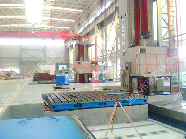 本产品是为齐二机床厂配套的落地镗铣床平台。落地镗床工作台是机床工作台的一种,主要用于机床加工工作平面的使用,上面有孔和T型槽,用来固定工件和清理加工时产生的铁屑,在工业生产中获得广泛应用。