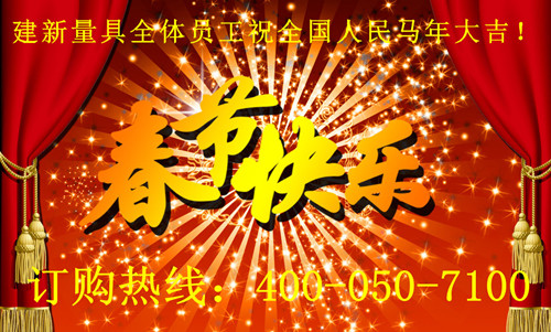 春节即将来临,在此建新量具总经理刘超携公司全体员工送上我们诚挚的问候和衷心的祝福,预祝广大客户新春快乐,生意兴隆,财源滚滚马年大吉!祝愿各界新老用户,友人——全家团圆,幸福安康。